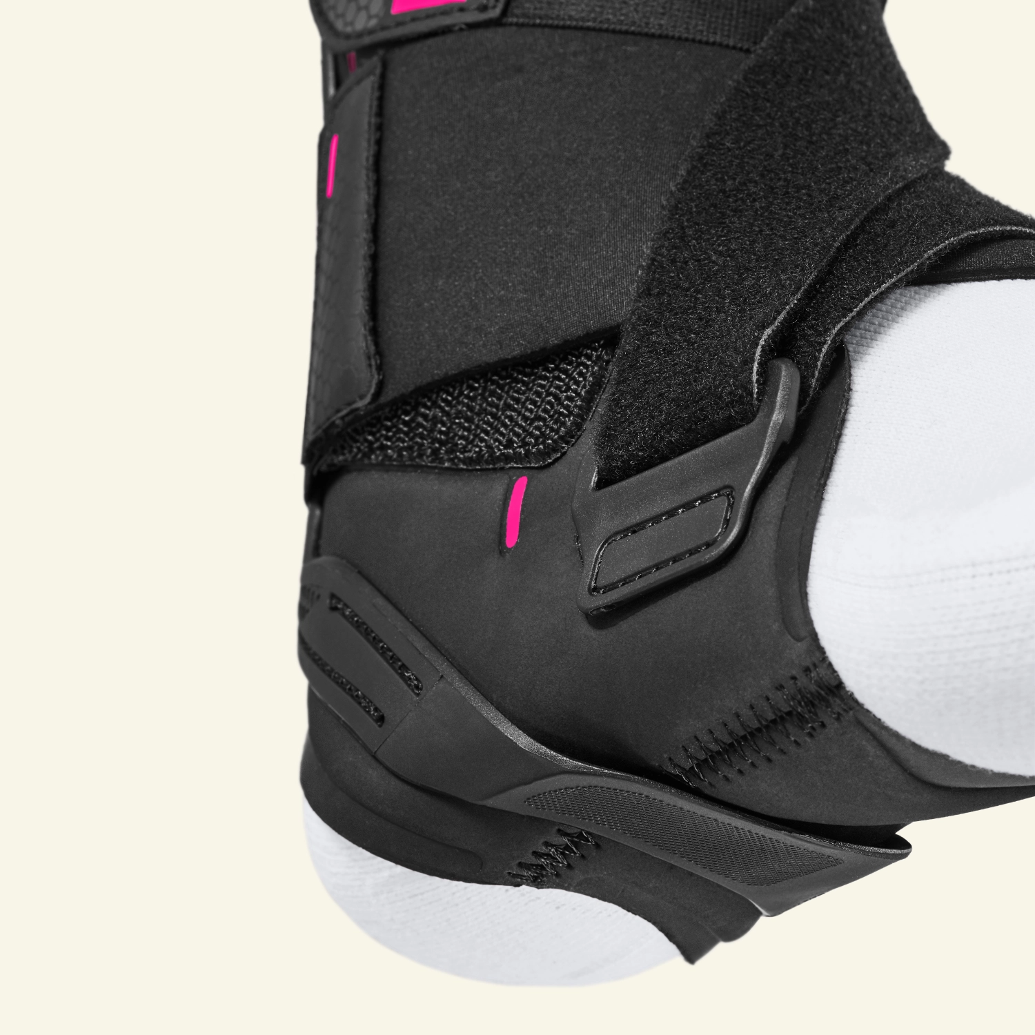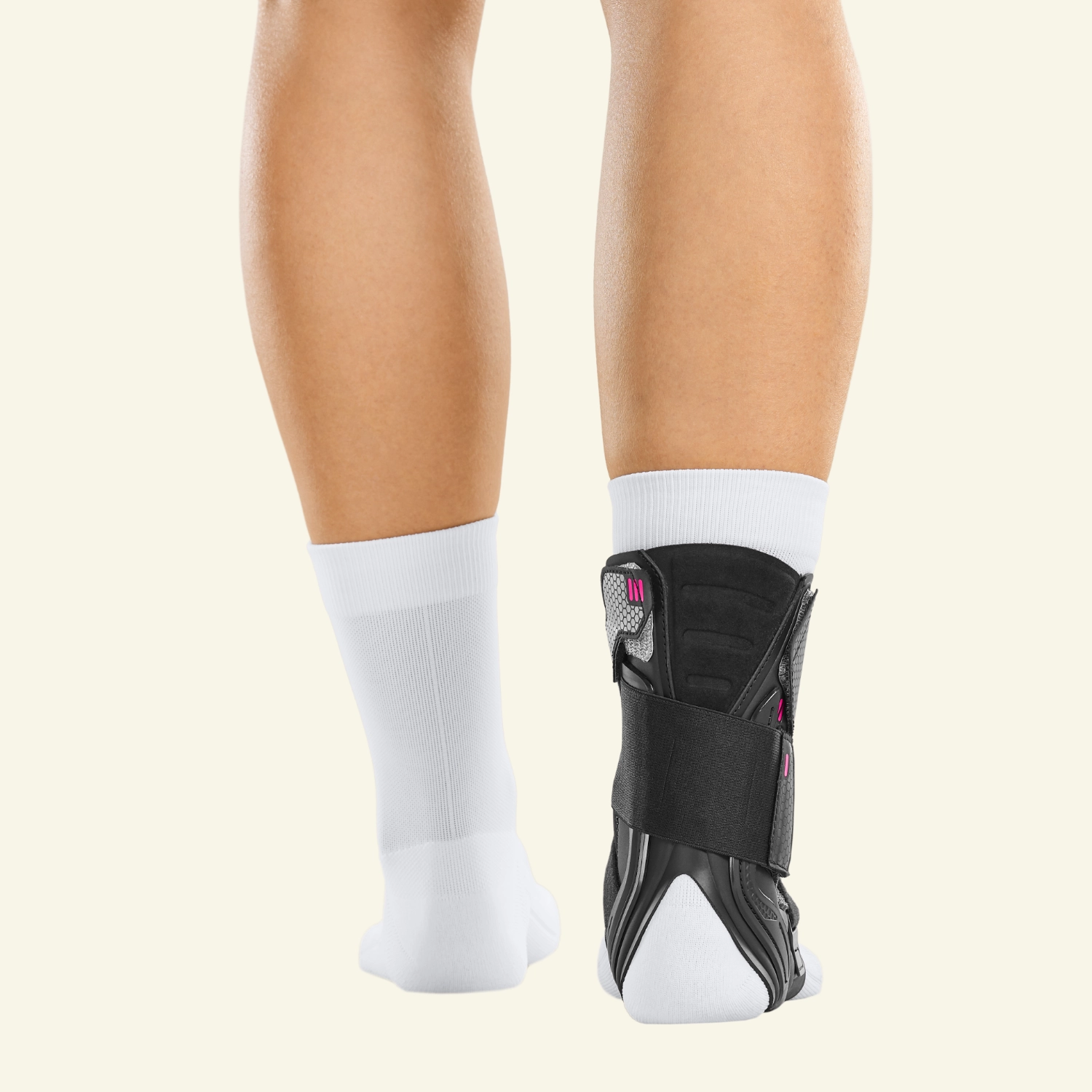 Het stabiliserende element werkt samen met de power-lift functie (lichte spanning aan de buitenzijde van de voet via de talusband) om het kapsel en de enkelbanden effectief te beschermen. Dit helpt om ongezonde of overmatige enkelbewegingen te voorkomen. Dankzij het Easy-2-Strap systeem met twee verstelbare banden en de gemakkelijke instap is de brace snel en eenvoudig aan te trekken en aan te passen.